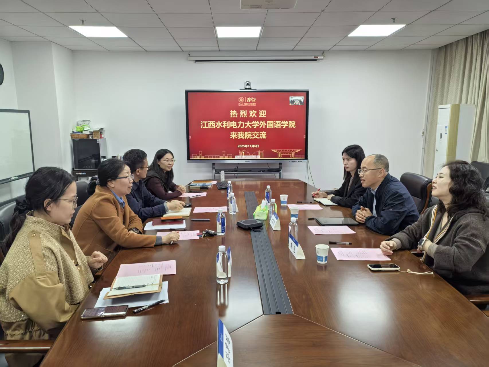 11月6日,江西水利电力大学外国语学院党委书记宋志刚一行来我院调研交流,外国语学院领导班子成员,英语系主任、英语系法语系党支部书记参加了交流,双方就“十五五”建设规划、专业建设、党建与业务融合等议题深入探讨。会议由院长张海榕教授主持。